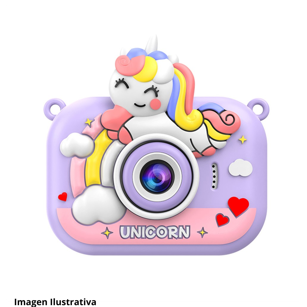 Esta camara infantil digital combina diversion y creatividad en un diseño encantador inspirado en un unicornio. Incluye un tripoide desmontable que proporciona estabilidad al capturar imagenes, permitiendo a los niños explorar el mundo de la fotografia de una forma comoda y segura.
