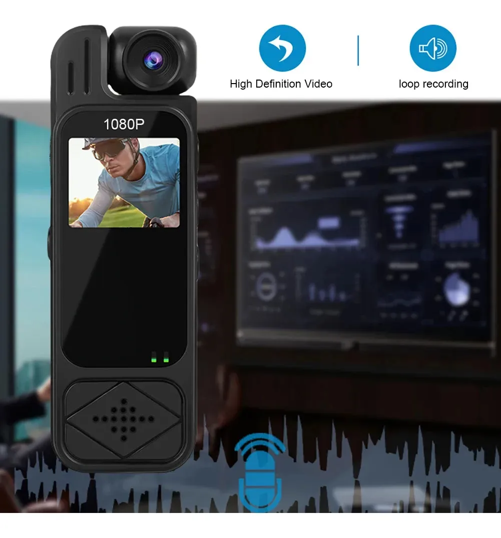 Características: Grabación de vídeo con un solo clic. Toma de fotografías con un solo clic. Grabación de audio con un solo clic. Grabación en bucle. Visión nocturna por infrarrojos. Lente giratoria de 180°. Sincronizar la hora del sistema. Tiempo de funcionamiento de la batería 5 horas. 3 940 luces infrarrojas de visión nocturna. Pantalla a color de 1,3 pulgadas for visualizar vídeo en cualquier momento. Admite la exploración de vídeos, fotos y la eliminación de archivos. Soporte máximo for tarjeta TF de 128 GB (no incluida). Grabadora de conducción, cámara policial, cámara exterior.