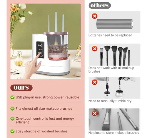 Limpieza sin esfuerzo: esta máquina limpiadora de brochas de maquillaje eléctrica proporciona una solución sin complicaciones que ahorra tiempo para limpiar tus brochas de maquillaje, eliminando la necesidad de fregar manualmente y reducir la tensión de la mano.