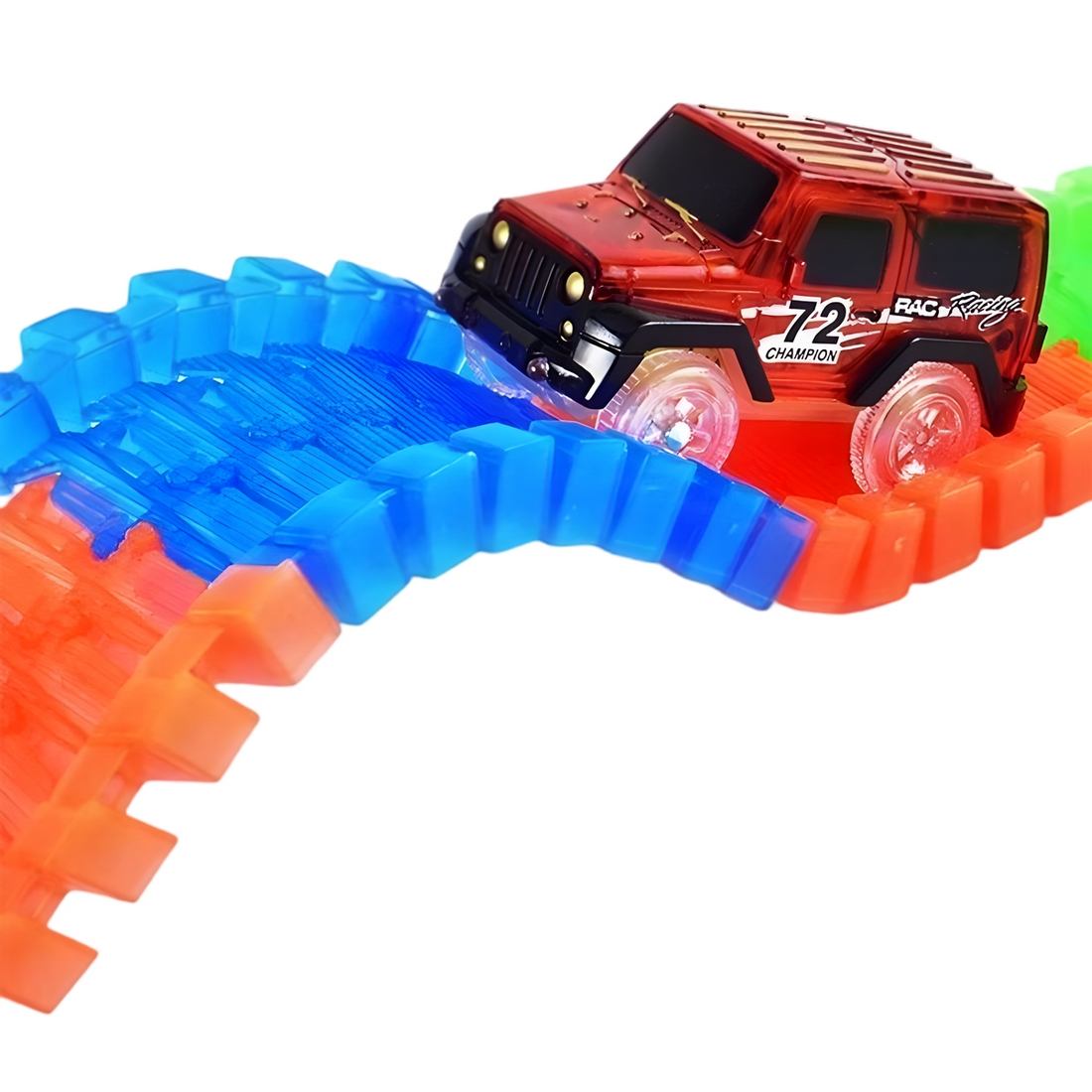 ¡Prepárate para una carrera llena de luz y velocidad con esta increíble pista mágica! Construye el circuito de tus sueños uniendo las piezas flexibles y de colores neón que brillan en la oscuridad, permitiéndote crear infinitas combinaciones de curvas y formas alucinantes. Una vez que tu pista esté lista, enciende el auto de carreras motorizado, que cuenta con potentes luces LED, y míralo correr a toda velocidad por tu creación, iluminando todo a su paso. Este set es perfecto para desatar la imaginación y la creatividad, transformando cualquier espacio en un espectacular show de luces y adrenalina que garantiza horas de diversión sin fin.