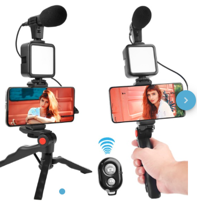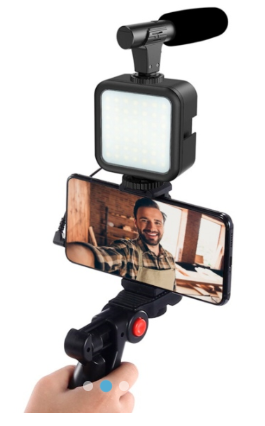 compañero de viaje perfecto para los creadores de videos que usan teléfonos inteligentes y adecuado para vloguear, hacer tiktok, Facebook en vivo, Instagram y más El kit de vlogging está diseñado para mejorar sus videos con un mejor sonido e iluminación, ya sea en interiores o exteriores.